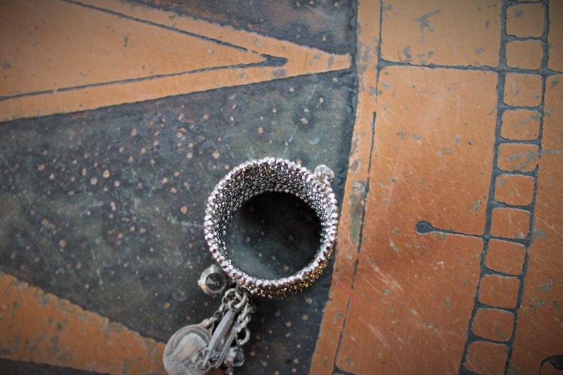 Antique Faceted Cut Steel Beads Coil Ring - 12 coils on a comfortable finger wrap with a beautiful and subtle sparkle!