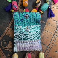 Colorful Antique Kantha wrapped oval beads - all made from Antique Kantha textiles