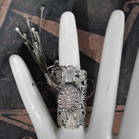 Unique Long Vintage Filigree Ring with Intricately Detailed and Prong Set Antique French Double Sacred Heart Medal...the upper case "M" intertwined with a cross symbolizes Mary's inseparability from Her Son - a lovely piece!